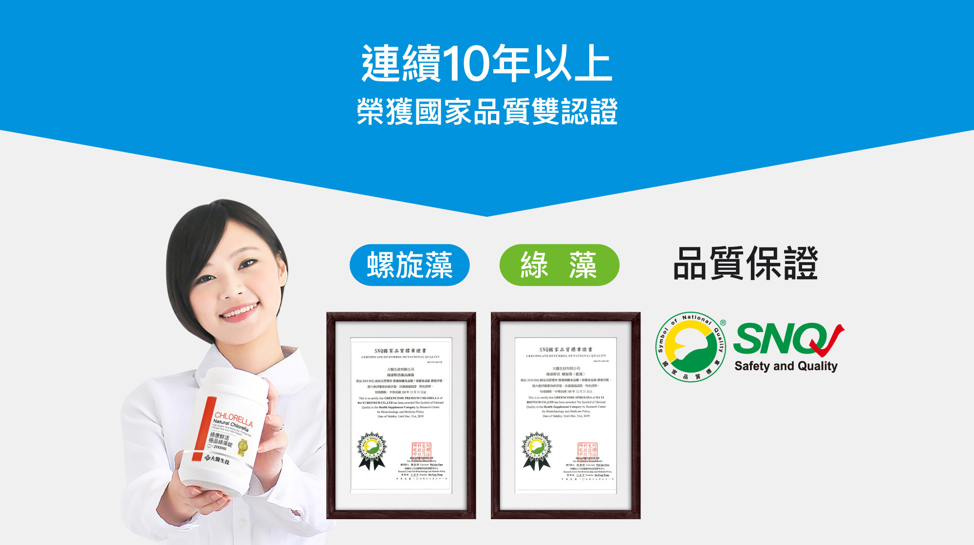 ANS:大醫生技藍藻及綠藻,通過SGS重金屬檢測(砷、鉛、鎘、汞)、生菌數、農藥、塑化劑、微囊藻毒、神經毒素(BMAA)、銅葉綠素檢測,可放心食用。