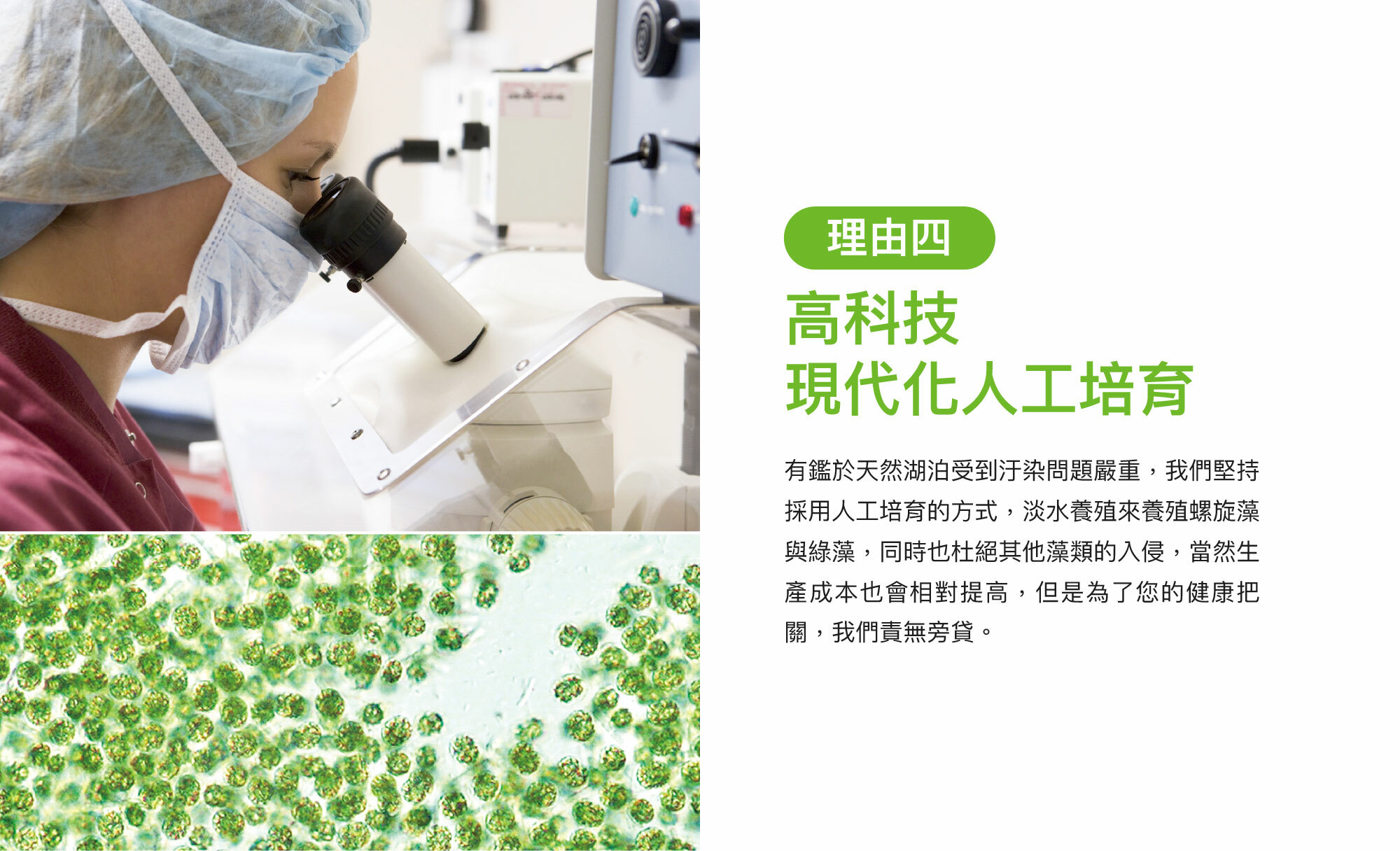 ANS:天然湖泊所生產的螺旋藻,容易被其他藻種入侵而存在著使用上的風險。我司採用的螺旋藻(藍藻)以及綠藻產品皆以人工培育,無微囊藻毒與神經毒(BMAA,β-甲氨基-L-丙氨酸)未檢出,所以使用上請放心。