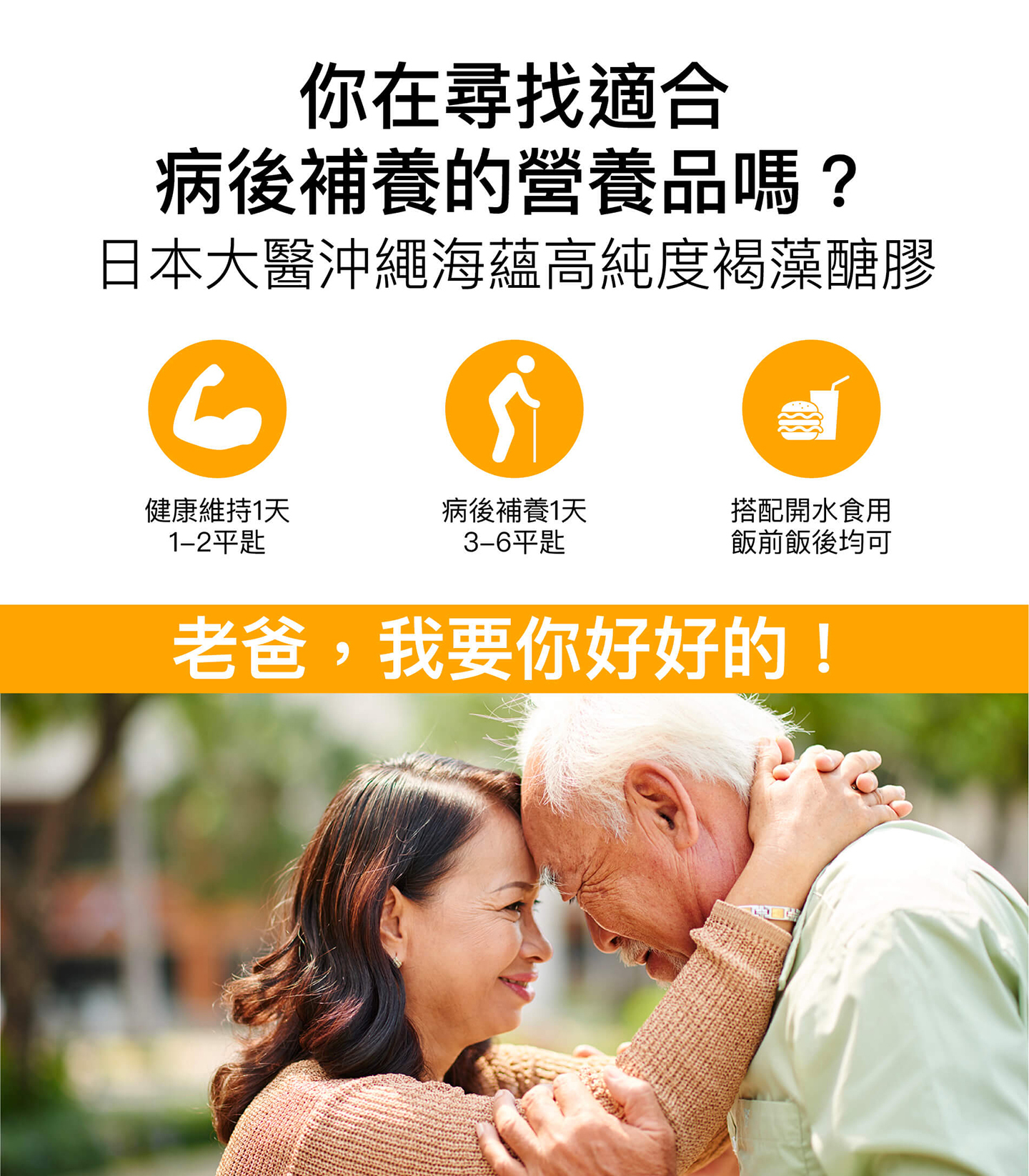 A:褐藻醣膠(Fucoidan),可幫助調節生理機能、增強體力,適合病後補養營養補充,也可當作日常保養食用唷。