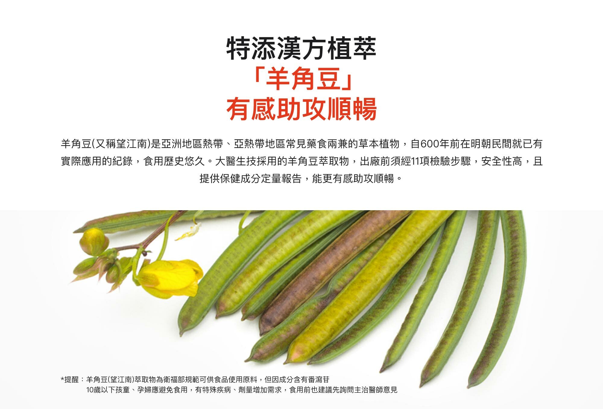 ANS:羊角豆(望江南)萃取物為衛福部規範可供食品使用原料,主要有效成分為番瀉苷。淨暢酵素錠每天1錠番瀉苷總量約5mg,符合「每日使用量不得達12毫克」規範限量。