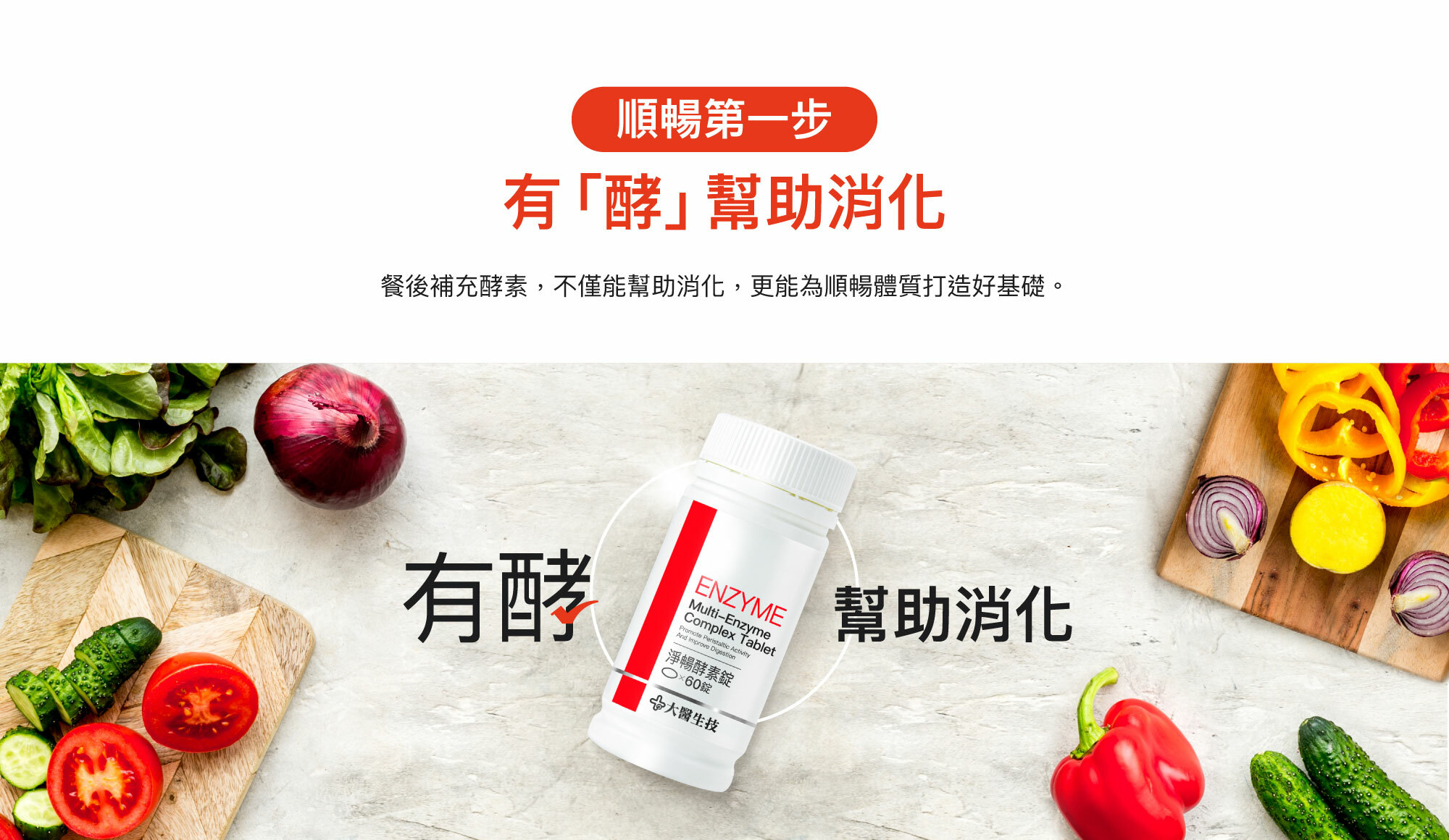 ANS:主要的功用為幫助分解食物,且含有19種不同功能性的酵素,可幫助食物分解完整的正常生理機能,讓排便順暢、協助維持消化道機能。