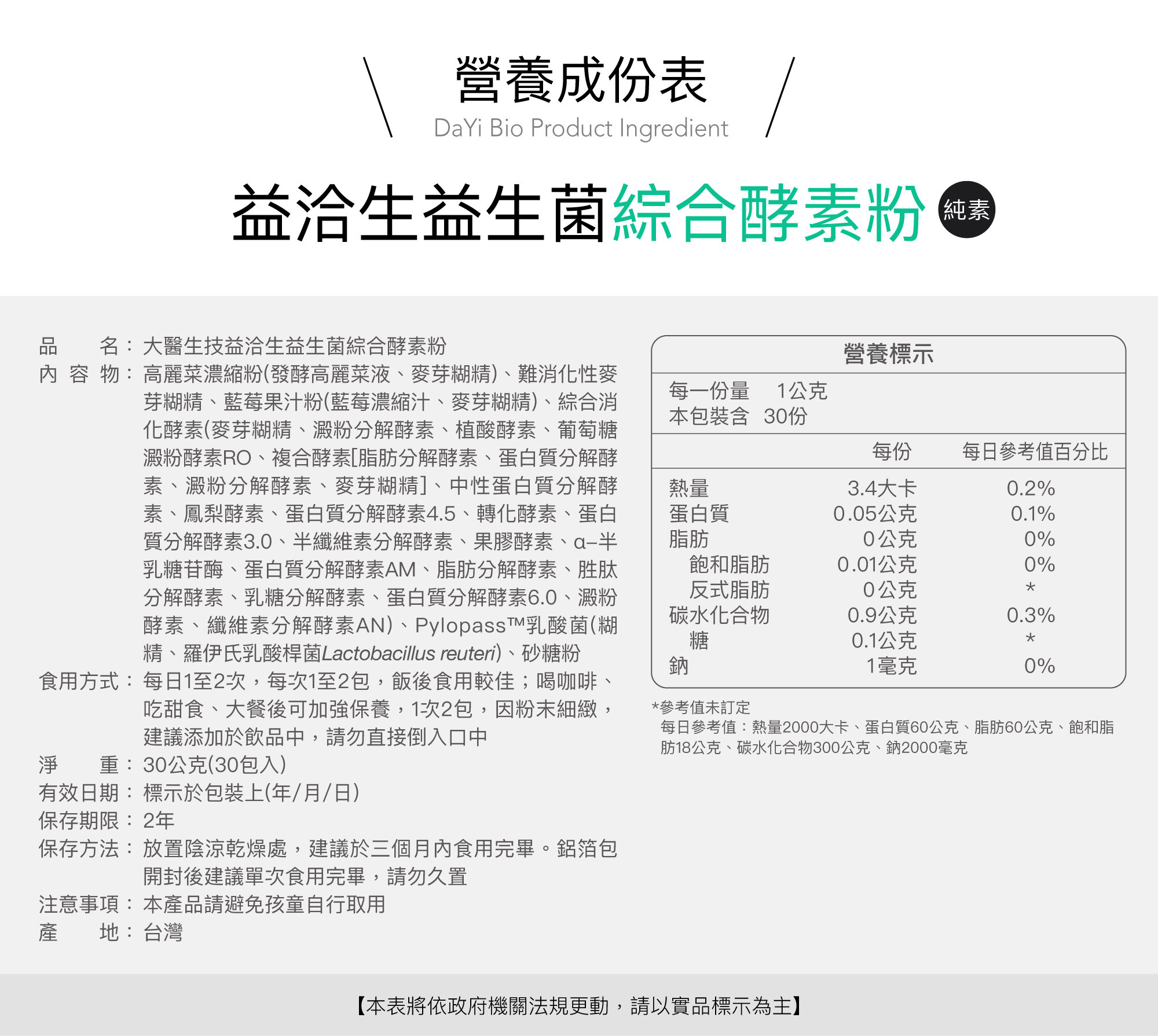 大醫生技益洽生益生菌綜合酵素粉主要配方有這3項