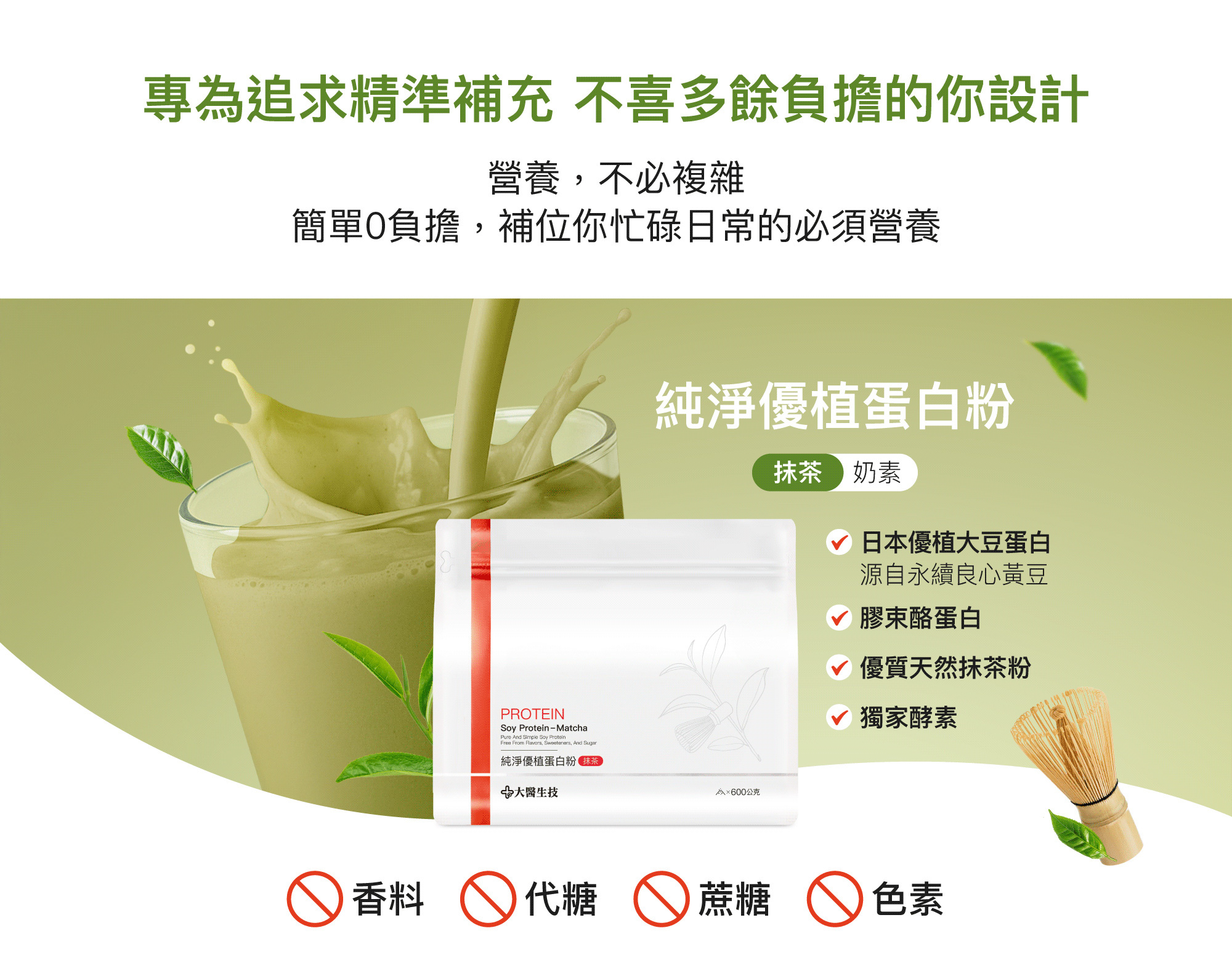 大醫生技純淨優植蛋白粉-抹茶|優質高蛋白、好吸收、無蔗糖無人工添加