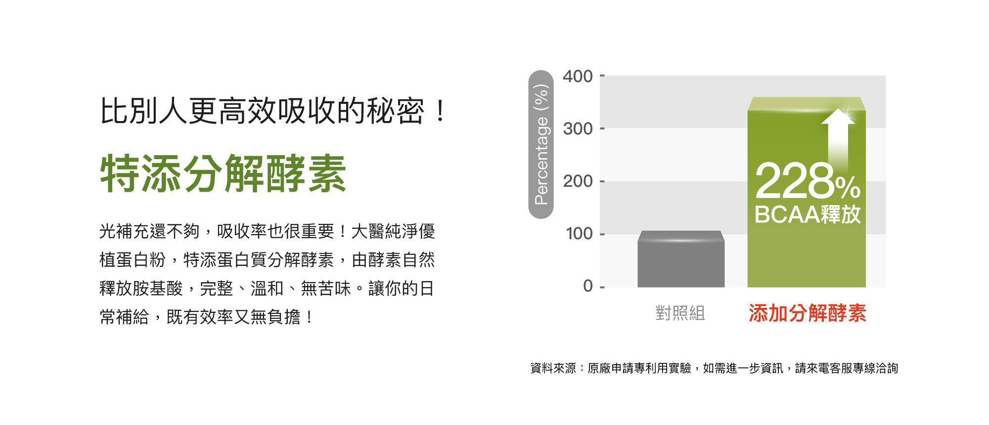 • 獨家酵素,幫助 BCAA釋放+228%