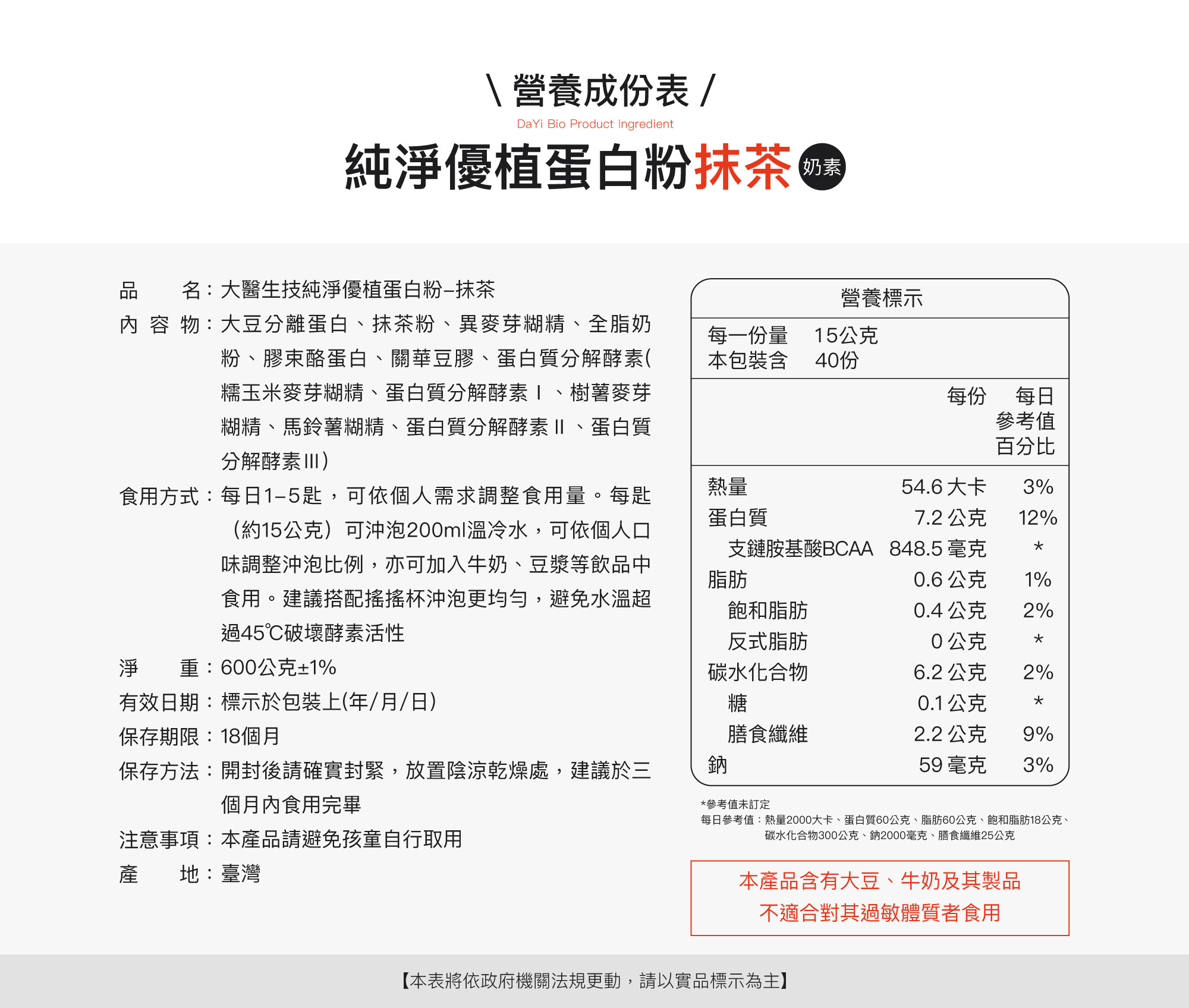原味含大豆蛋白與南瓜籽蛋白,可可、抹茶含大豆蛋白、乳製品,對此類成分過敏者請避免食用。