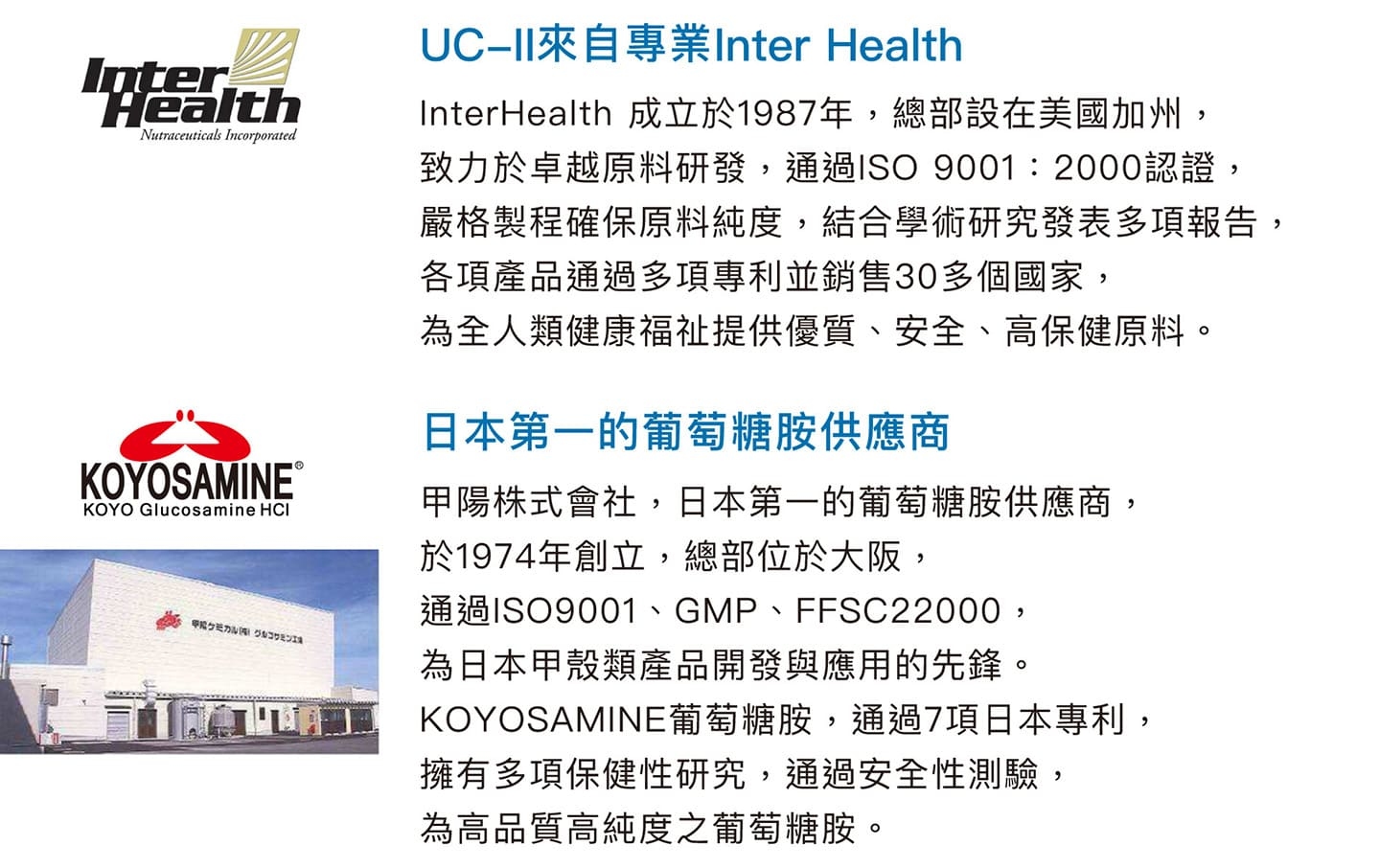 - 採用全球第一家含非變性二型膠原蛋白UC-II®