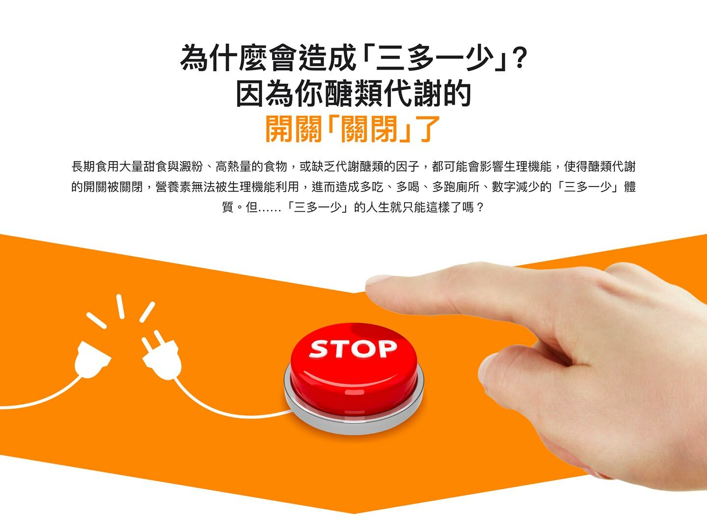 有「三多一少」(多吃、多喝、多跑廁所、數字減少),當健檢出現紅字、代謝下降,擔心自己成為高糖族,就可以開始補充B群+鉻,可幫助維持醣類正常代謝、調整體質、調節生理機能!