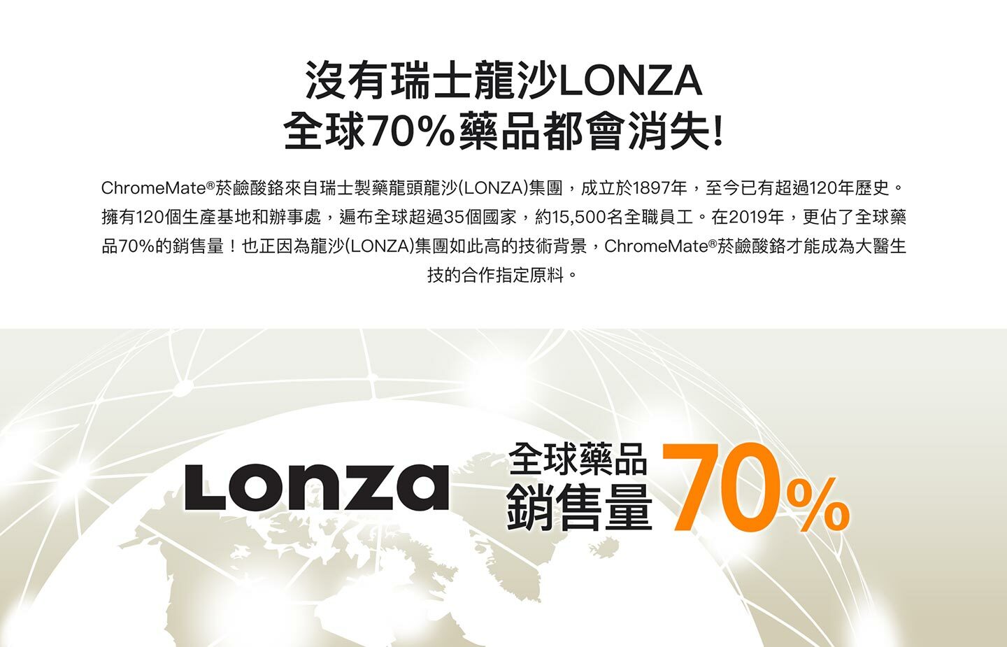 大醫生技與瑞士龍沙集團(Lonza)合作,並獲得hromeMate®專利菸鹼酸鉻商標授權。龍沙集團於1897年成立,至今已有120年以上歷史,是世界領先的醫療保健生物技術公司,Lonza致力於提供消費者更健康的生活方式,優化科學創新和製造技術,改善人們的健康,提供最高質量的醫療保健解決方案,是製藥、生物技術和特殊成分的全球領先供應商。